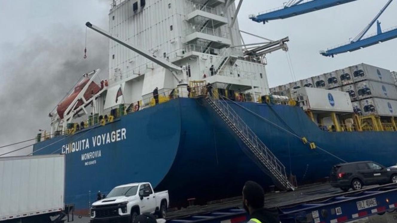 The fire broke out in the engine room of the Chiquita Voyager, prompting a large multi-agency emergency response and resulting in injuries to four crew members.