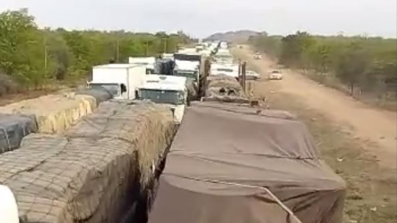 South Africa’s Beitbridge border into Zimbabwe is this morning effectively cut off by trucks queueing three abreast on the road south to Musina, severing a crucial lifeline for all-purpose and specialised cargo and blocking one of the region’s busiest crossings for pedestrians and smaller vehicles.