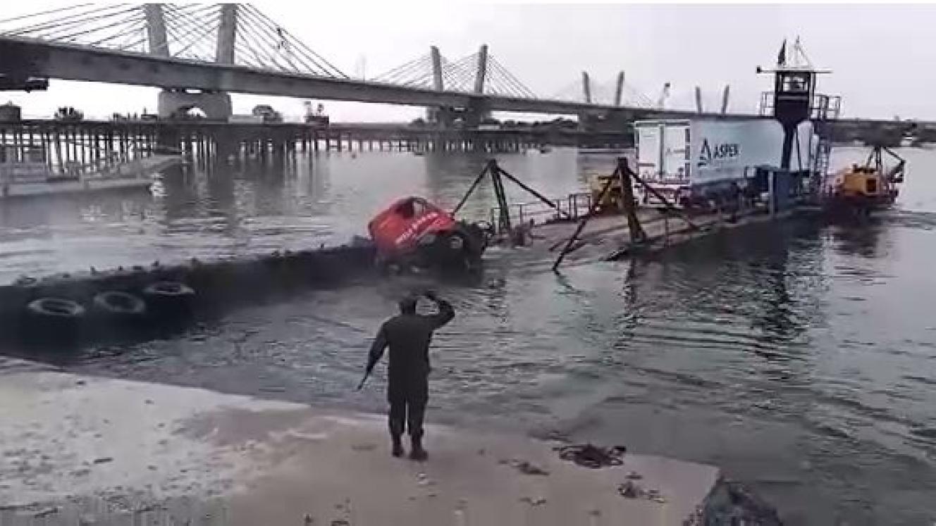 Earlier, prior to Covid-19 lockdown, a truck also slipped off the pontoon, back then heading south.