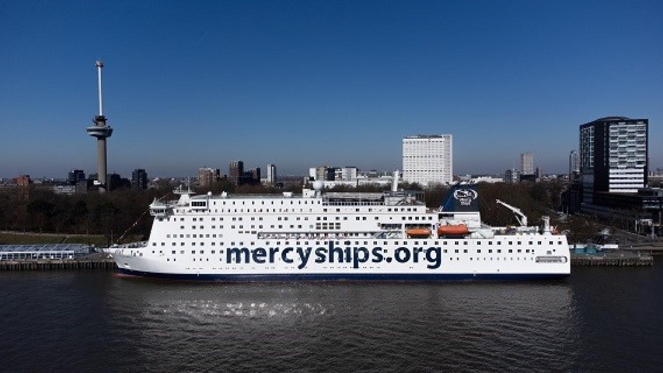 The 174-metre vessel will be used as a floating hospital and training centre with capacity for 950 people on board. It doubles the Mercy Ships fleet.