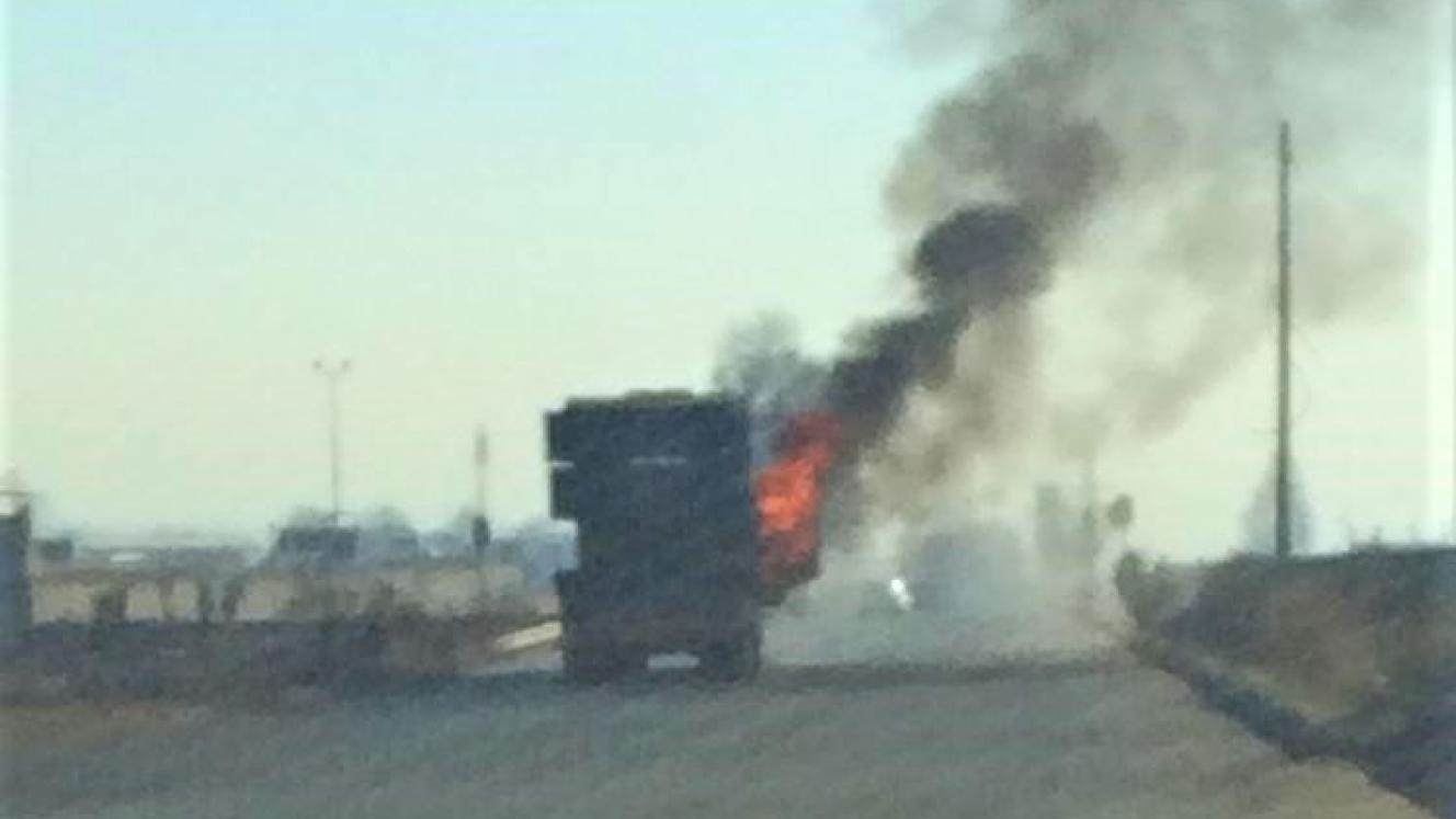 Elsewhere in Johannesburg, in what was eventually confirmed to be Alrode, a truck can be seen with fire erupting from its side as black smoke billows into the air.