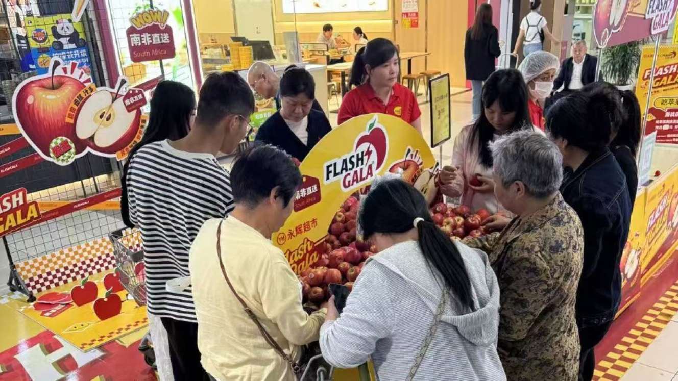 “Chinese consumers generally prefer striped Gala apples, but with targeted promotions, we convinced Yong Hui Superstores to carry Flash Gala. It’s been a breakthrough in the Chinese retail market. We are luring consumers with our promotional banners, encouraging them to develop an appetite for beautiful red apples. By giving them a good experience, they will return for more,” says JJ van der Spuy, commercial manager of fruit exports at Core Fruit.
