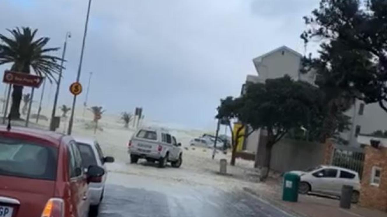 In video footage shared with Freight News via social media, swells can be seen crashing over the peer at Mouille Point, with strong gusts fanning sea foam into the streets.