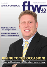26 Nov 2013 Swazi Rail ‘in positive transition’ 26 Nov 2013 ‘We can’t keep on trucking’ 26 Nov 2013 Zambia diversifies 26 Nov 2013 Regional integration is key 26 Nov 2013 Botswana and SA in talks over Customs quarrel 26 Nov 2013 Good volumes on Mozambique route 26 Nov 2013 TOP TIPS FOR EXPORTING 26 Nov 2013 Need for Speed 26 Nov 2013 Improved roads help speed up deliveries 26 Nov 2013 East Africa on the brink of a new era of growth 26 Nov 2013 Botswana volumes lower 26 Nov 2013 Big plans to develop Gabcon as regional hub 26 Nov 2013 Transporters up in arms over Zambia toll fees 26 Nov 2013 Ziegler sets its sights on own office 26 Nov 2013 'One-man bands' upset the balance 26 Nov 2013 Disempowered! 26 Nov 2013 Economic growth unlocks investment funds 26 Nov 2013 'Finding the right people is crucial' 26 Nov 2013 Imperial plans growth through acquisition 26 Nov 2013 French line to extend expertise on shore 26 Nov 2013 Botswana's project sector beckons 26 Nov 2013 Staff cuts intensify Botswana border delays 26 Nov 2013 DRC logistics specialist woos SA market 26 Nov 2013 Almar upbeat about Africa growth 26 Nov 2013 ‘Public private partnerships key to developing infrastructure' 26 Nov 2013 Port developments could realign freight routes 26 Nov 2013 Massive infrastructure expenditure on the cards 26 Nov 2013 Infrastructure gets a boost from China, India 26 Nov 2013 Happy birthday! 26 Nov 2013 Business flies high for charter operator 26 Nov 2013 Forwarder upbeat as business grows 26 Nov 2013 Pressing need to fast-track infrastructure development 26 Nov 2013 Forwarding association gives Botswana agents a voice 26 Nov 2013 SA's gateway status - is change imminent? 26 Nov 2013 First controlled atmosphere warehouses for Beira 26 Nov 2013 Lesotho project creates freight opportunities 26 Nov 2013 Meeting landside requirements the biggest challenge 26 Nov 2013 Lüderitz silences the sceptics 26 Nov 2013 'Building relationships is key to growth' 26 Nov 2013 Botswana hauliers battle rising costs 26 Nov 2013 Steady rise in breakbulk cargo 26 Nov 2013 Resetting its fleet 26 Nov 2013 Plans afoot to grow regional offices 26 Nov 2013 Rising to the occasion! 26 Nov 2013 Complex KPIs improve service delivery - MSC 26 Nov 2013 Getting the balance right 26 Nov 2013 Single Window System for Lesotho 26 Nov 2013 New Swazi minister puts the spotlight on infrastructure 26 Nov 2013 South Africa eases barriers to trade with neighbours 26 Nov 2013 CFR hints a stronger Africa representation 26 Nov 2013 What stifling Africa's growth 26 Nov 2013 Porsche targets sub-Saharan Africa expansion 26 Nov 2013 Skills challenge constrains continent's growth 26 Nov 2013 Strong agent network key to logistics success 26 Nov 2013 Botswana agents lobby government for logistics school 26 Nov 2013 Logistics company set to double volumes into Africa 26 Nov 2013 Zambia's export container dearth solved 26 Nov 2013