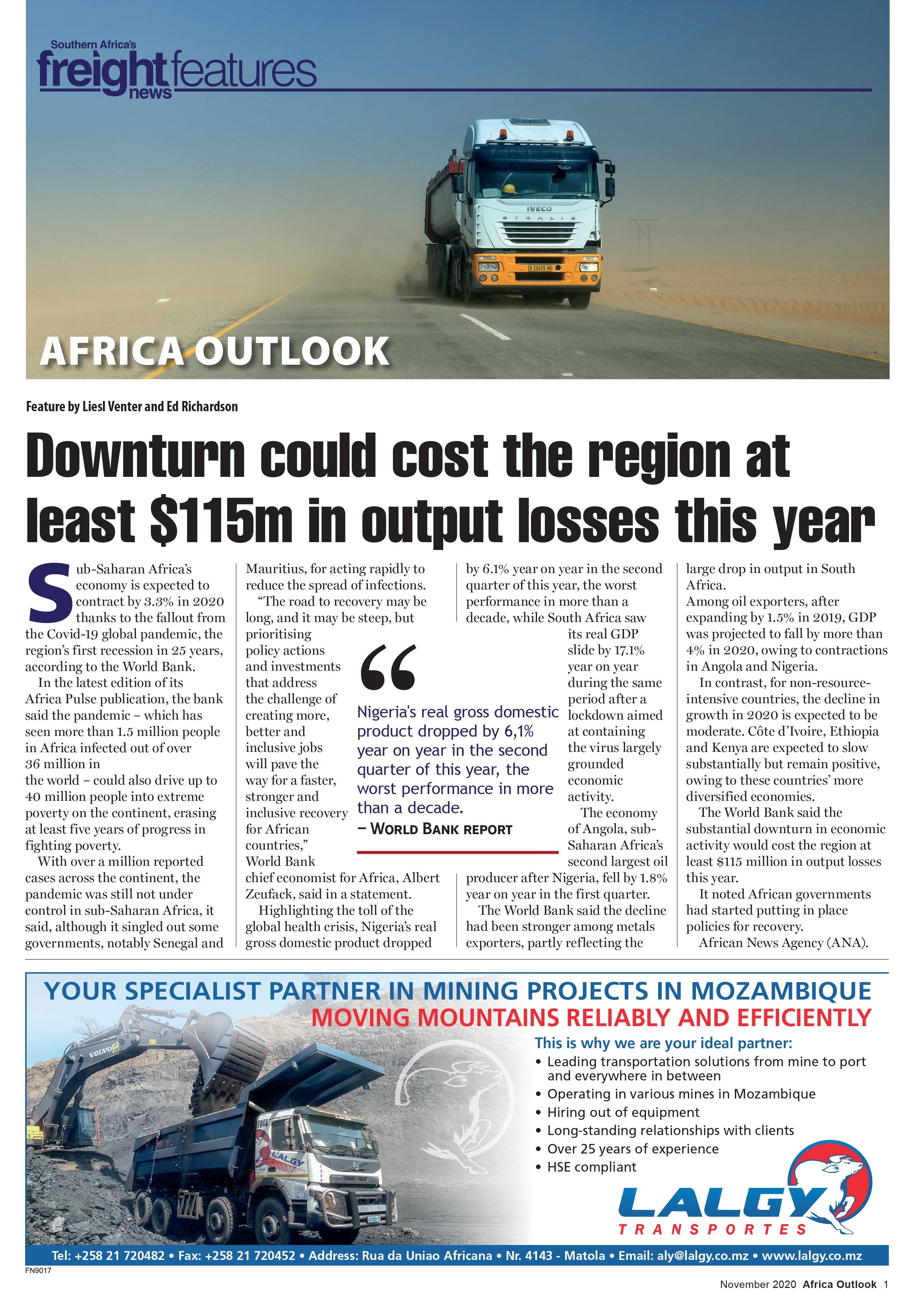 27 Nov 2020 View PDF Conflicts disrupting lives and trade 27 Nov 2020 New solution for vaccine logistics challenges 27 Nov 2020 Regional footprint helped ensure steady flow of fuel 27 Nov 2020 Downturn could cost the region at least $115m in output losses this yea 27 Nov 2020