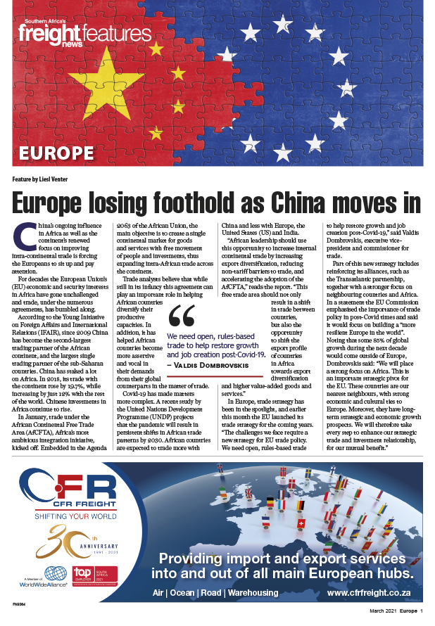 18 Mar 2021 View PDF Warthog, Viper and Oryx beef up West Africa service 18 Mar 2021 AMI expands footprint and strengthens local ties 18 Mar 2021 DAL adds reefer capacity on SA route 18 Mar 2021 Multi-hub approach helps mitigate risk for LCL shipments 18 Mar 2021 Europe losing foothold as China moves in 18 Mar 2021