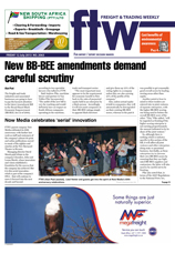 12 Jul 2013 View PDF Namibia plans to become power exporter 12 Jul 2013 No chance of Aarto meeting deadline - RFA 12 Jul 2013 Improved security brings economic benefits 12 Jul 2013 Carbon footprint tracker to diversify 12 Jul 2013 Fight over high-cube restrictions continues 12 Jul 2013 Asian partnership pays off for ILA 12 Jul 2013 Iata makes headway with Secure Freight programme 12 Jul 2013 Airlines need a united front to beat the challenges – Iata 12 Jul 2013 Consider the benefits of dealing in renminbi 12 Jul 2013 Hauliers calculate toll costs 12 Jul 2013 Arbitrary fines milk transporters 12 Jul 2013 On-site Customs inspections get the nod 12 Jul 2013 'No one size fits all' 12 Jul 2013 DUTY CALLS 12 Jul 2013 Export packer joins global network 12 Jul 2013 Exporters tune into cost benefits of environmental awareness 12 Jul 2013 Ro-ro industry spends $3bn a year to combat piracy 12 Jul 2013 New BB-BEE amendments demand careful scrutiny 12 Jul 2013 LAST WEEK'S TOP STORIES ON FTW ONLINE 12 Jul 2013 Now Media celebrates ‘serial’ innovation 12 Jul 2013