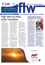 12 Oct 2012 View PDF US targets high-tech growth in Africa 12 Oct 2012 Bayhead upgrade completed 12 Oct 2012 New projects in Africa open up export jobs market 12 Oct 2012 LAST WEEK'S TOP STORIES ON FTW ONLINE 12 Oct 2012 'It's about making a difference in the lives of consumers worldwide' 12 Oct 2012 ‘Skilled staff with realistic salary expectations a rare find' 12 Oct 2012 Bulk specialist sets up c&f division 12 Oct 2012 Courses accredited by Teta and Samsa 12 Oct 2012 Report finds irregularities in marine vessel management tender 12 Oct 2012 Mobile crane set for December delivery 12 Oct 2012 'Don't expect petrol price relief until next year' 12 Oct 2012 Aarto remains in limbo 12 Oct 2012 Another delay for mandatory container weight verification 12 Oct 2012 Logistics major rebrands 12 Oct 2012 Force majeure and Shell - the legal angle 12 Oct 2012 Regional railway event to focus on integration 12 Oct 2012 'Skilled staff still in short supply' 12 Oct 2012 Small airport operator could halt Transnet's dig-out port plans 12 Oct 2012 DUTY CALLS 12 Oct 2012 Strike acton sends message of instability 12 Oct 2012 High alert as strike action escalates 12 Oct 2012 Pushing holistic approach to up-skilling 12 Oct 2012 Gigaba calls for regional partnerships to grow revenue 12 Oct 2012 Helping forwarding industry to meet global demands 12 Oct 2012 TFR fails to win strike-struck business 12 Oct 2012 Expansion work begins on Panama Canal 12 Oct 2012