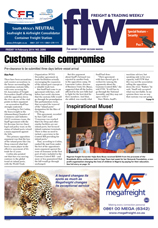 14 Feb 2014 Consolidation ushers in new era for carriers and shippers 14 Feb 2014 New service targets fake drivers' licence scam 14 Feb 2014 Energy could unlock US trade ties for SA 14 Feb 2014 Inspirational Muse! 14 Feb 2014 Durban congestion fall-out 14 Feb 2014 SA is crime capital in Africa 14 Feb 2014 Corruption tops security risks in Africa 14 Feb 2014 Corrupt customs obstructs trade growth 14 Feb 2014 Not so fast! 14 Feb 2014 Containerised cargo grows 8.9% 14 Feb 2014 Mitigate threats through planning 14 Feb 2014 Citrus exporters face uncertain future 14 Feb 2014 Customs bills compromise 14 Feb 2014 A380 takes off 14 Feb 2014 Security – the human element 14 Feb 2014 Africa’s security hotspots 14 Feb 2014 Where to raise your port issues 14 Feb 2014 Importers face growing compliance burden 14 Feb 2014 LAST WEEK'S TOP STORIES ON FTW ONLINE 14 Feb 2014 DUTY CALLS 14 Feb 2014 New CT Manager 14 Feb 2014