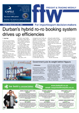 23 Mar 2012 View PDF Nationalisation remains key investor concern in SA 23 Mar 2012 ‘Africa should take leading global oil production role’ 23 Mar 2012 Last week’s top stories on 23 Mar 2012 Durban’s hybrid ro-ro booking system drives up efficiencies 23 Mar 2012 Work due to start on Maputo Ring Road 23 Mar 2012 Five years on, Ports Regulator to focus on compliance and efficiency 23 Mar 2012 CFR appoints airfreight director 23 Mar 2012 Djibouti volumes almost double in six months 23 Mar 2012 ‘RB has plenty of room for expansion’ 23 Mar 2012 ‘Archaic’ requirements push up costs of abnormal load permits 23 Mar 2012 Africa specialist plans over-border offices 23 Mar 2012 Swazi shippers stick with Durban over Maputo 23 Mar 2012 Ports Regulator spells out thinking behind ‘buffer fund’ 23 Mar 2012 DUTY CALLS 23 Mar 2012 Overcapacity could hit SA trades as lines bring on mega-ships 23 Mar 2012 ‘Africa must start investing in Africa’ 23 Mar 2012 New Musina China City raises smuggling concerns 23 Mar 2012 Government puts its weight behind Ngqura 23 Mar 2012 Logistics holds key to GMSA’s African drive 23 Mar 2012 Cape manager appointed 23 Mar 2012 ACR brings new airlines on board 23 Mar 2012 SA wagons to carry Mozambican coal 23 Mar 2012 Legal action against tolls gets under way 23 Mar 2012