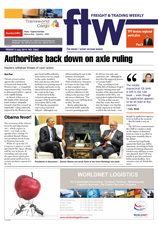 5 Jul 2013 View PDF Obama fever! 5 Jul 2013 Landmark case clips Sars’ wings 5 Jul 2013 RFA committee mulls implications of pending carbon tax 5 Jul 2013 Africa gets lion’s share of FDI 5 Jul 2013 TPT devises regional ports plan 5 Jul 2013 Infrastructure development on parade 5 Jul 2013 LAST WEEK'S TOP STORIES ON FTW ONLINE 5 Jul 2013 DUTY CALLS 5 Jul 2013 Slower demand affects Swazi transport route 5 Jul 2013 Authorities back down on axle ruling 5 Jul 2013 LETTER 5 Jul 2013 How accurate are Transnet’s growth forecasts? 5 Jul 2013 Lessons for SA from largest US port 5 Jul 2013 Transport and logistics company launched 5 Jul 2013
