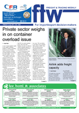 8 Jul 2011 View PDF Tsunami fall-out continues to affect auto production 8 Jul 2011 Walvis Bay efficiency changes logistics patterns 8 Jul 2011 TFR commits to reducing ‘incidents’ 8 Jul 2011 Private sector weighs in on container overload issue 8 Jul 2011 Cargocare considers ‘runners’ to mimimise border delays 8 Jul 2011 PPPs the way to go for rail infrastructure 8 Jul 2011 Rail regulator on the cards 8 Jul 2011 Airfreight industry must grow southbound volumes 8 Jul 2011 US screening requirements will severely affect SA shippers 8 Jul 2011 MOL adds capacity on Asia service 8 Jul 2011 Sanral’s toll collection fee ‘very high’ 8 Jul 2011 Truckers will need a back-up plan when Aarto is launched 8 Jul 2011 Iata backs down on Cass guarantee 8 Jul 2011 DUTY CALLS 8 Jul 2011 Train and truck collision claims a life 8 Jul 2011 Legal minds dissect the issue of transporters’ liability and the CPA 8 Jul 2011 Airlink adds freight capacity 8 Jul 2011 CFR relocates CT airfreight premises 8 Jul 2011 ‘Security screening certificates are not for sale’ 8 Jul 2011 Logistics industry must address issue of rising costs 8 Jul 2011 African ports face volume overload 8 Jul 2011