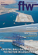 27 May 2019 View PDF Regional co-operation between rail operators gains momentum 27 May 2019 TransNamib focuses on core business 27 May 2019 Training centre helps to close the skills gap 27 May 2019 ONE adds Walvis Bay Service 27 May 2019 ‘Commit the cargo and we will invest’ 27 May 2019 Better understanding of logistics will drive growth 27 May 2019 Namport will need to sharpen its pencil – Clof 27 May 2019 Namibia goes to the polls in November 27 May 2019 Truckers forced to navigate deadly roads 27 May 2019 Geared for growth 27 May 2019 Positive trends in the Namibian freight sector 27 May 2019 New terminal will create retail opportunities 27 May 2019 The logistics behind sustainable firelighters 27 May 2019 Grootfontein dry port to reduce logistics costs 27 May 2019 Pioneering a new tobacco gateway 27 May 2019 Namport wants to talk business with private sector 27 May 2019 New container terminal set for August launch 27 May 2019 Prospects for Walvis Bay bulk exports looking up 27 May 2019 Health of its neighbours will determine logistics growth 27 May 2019 Freeing up space for bulk 27 May 2019 WBCG focuses on logistics rollout 27 May 2019 Namibian economic crystal ball gazers need to factor in logistics 27 May 2019