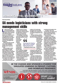 1 Feb 2024 View PDF Despite challenges, 2024 outlook positive 1 Feb 2024 Actionable data is key for an effective recruitment strategy 1 Feb 2024 Urgent call to improve skills gap – survey 1 Feb 2024 SA needs logisticians with strong management skills 1 Feb 2024