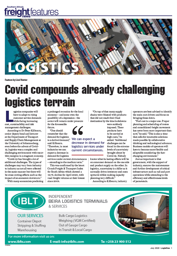 23 Jul 2020 View PDF Realising efficiencies with smart trucks 23 Jul 2020 Pandemic highlights collaboration imperative 23 Jul 2020 AI is the critical ingredient for success 23 Jul 2020 New last-mile challenges create opportunities 23 Jul 2020 Covid-19 overshadows logistics providers’ existing comorbidities 23 Jul 2020 Skills deficit continues to ambush enhanced performance 23 Jul 2020 For the love of logistics 23 Jul 2020 3PLs in the pound seats as demand for reverse logistics grows 23 Jul 2020 Covid speeds up ‘de-risking’ of supply chains 23 Jul 2020 SA’s logistics performance continues downward spiral 23 Jul 2020 Logistics major upbeat about growth in e-commerce sector 23 Jul 2020 Covid compounds already challenging logistics terrain 23 Jul 2020