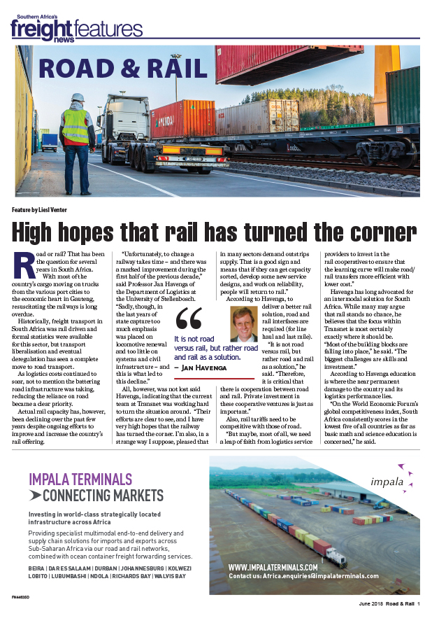 25 Jun 2020 View PDF Covid could drive cargo from road to rail 25 Jun 2020 coviCovid-19 halts government’s Aarto plans 25 Jun 2020 Namibia sets 2025 deadline to move 50% of cargo to rai 25 Jun 2020 The road vs rail debate – an economist’s perspective 25 Jun 2020 Road freight volumes at lowest since 2008 25 Jun 2020 Decline in commodity prices holds back rail development 25 Jun 2020 ‘Artificial’ shortage of trucks as Covid testing clogs borders 25 Jun 2020 Ambitious rail plan a ‘big bang’ solution for Africa 25 Jun 2020 Harmonisation identified as key to delivery of rail projects 25 Jun 2020 Lack of reliability stymies modal shift 25 Jun 2020 High hopes that rail has turned the corner 25 Jun 2020