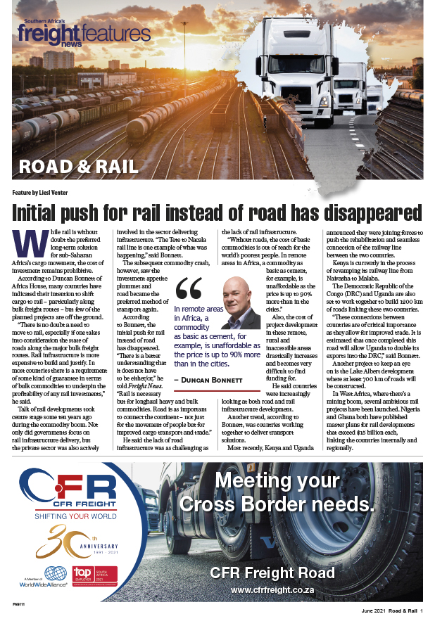 10 Jun 2021 View PDF Crumbling road infrastructure more than doubles truck maintenance costs 10 Jun 2021 Brace yourselves for Aarto 10 Jun 2021 Border delays push up LTL demand 10 Jun 2021 AfCFTA adds urgency to need for harmonisation of regional regulations 10 Jun 2021 Infrastructure theft sabotages rail’s growth aspirations 10 Jun 2021 Initial push for rail instead of road has disappeared 10 Jun 2021