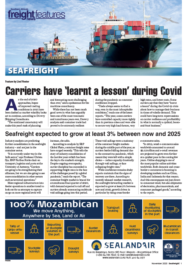 Seafreight expected to grow at least 3% between now and 2025Carriers have ‘learnt a lesson’ during Covid 19 Nov 2020
