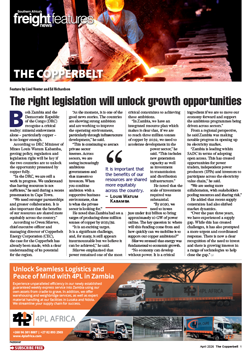 9 Apr 2026 View PDF Societal needs shape demand for copper 10 Apr 2026 Substantial investment in logistics corridors 10 Apr 2026 Opportunity to challenge China’s dominance 10 Apr 2026 Conference targets corridor rethink to unlock regional trade 10 Apr 2026 Stability key to attracting investment 10 Apr 2026 The right legislation will unlock growth opportunities 10 Apr 2026