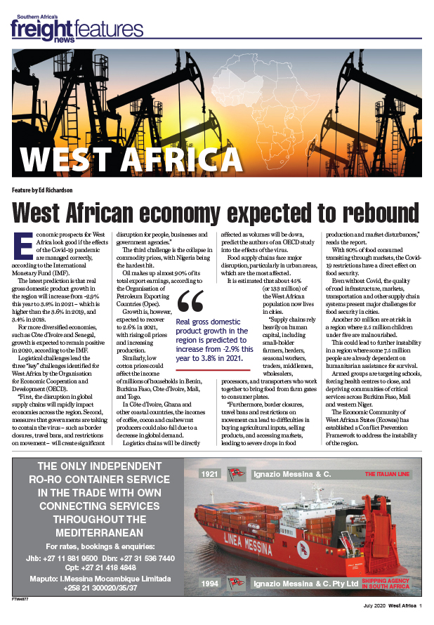 16 Jul 2020 View PDF Covid exposes Nigeria’s oil dependency 16 Jul 2020 Investment drive addresses West African port delays 16 Jul 2020 Congestion leading to delays in West Africa 16 Jul 2020 Shipping line bans transport of rosewood cargo 16 Jul 2020 West Africa demands pre-export verification 16 Jul 2020 West African economy expected to rebound 16 Jul 2020