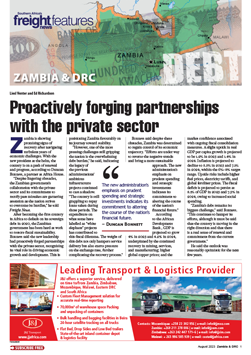 17 Aug 2023 View PDF China continues to gain ground in DRC 17 Aug 2023 Trading with the world 17 Aug 2023 Drive to modernise agriculture 17 Aug 2023 Urgency to chart a new course for copper industry 17 Aug 2023 Corruption levels stabilise 17 Aug 2023 Lucrative opportunities for SA companies in DRC 17 Aug 2023 High praise from International Monetary Fund 17 Aug 2023 Global financial institutions power changes in energy mix 17 Aug 2023 EV revolution creates value-adding opportunities 17 Aug 2023 Volumes into Lusaka on the rise 17 Aug 2023 Private sector invited to put rail back on track 17 Aug 2023 Airfreight growth yet to materialise this year 17 Aug 2023 Marginal improvement in bribery index 17 Aug 2023 Streamlining preclearance for DRC cargo 17 Aug 2023 Stable conditions attracting investment 17 Aug 2023 Copper to fund economic growth and diversification 17 Aug 2023 Lobito Corridor a regional game changer 17 Aug 2023 Extractive sector drives DRC growth 17 Aug 2023 Proactively forging partnerships with the private sector 17 Aug 2023